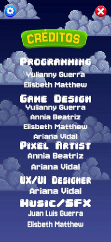 - Elisbeth Matthew, encargada de música, efectos de sonido y funcionalidad de interfaces de usuario.